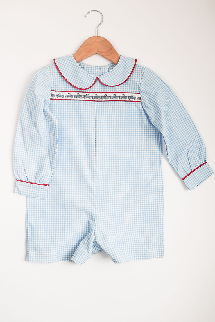 Cohen Ribbon Shortall in Light Blue Check, SIZE 3T
